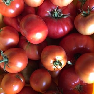 Tomatoes: Less than 20 pounds @ $1.50/pound. More than 20 pounds @ $1/lb. Full bushel (53lbs) @$50.00.